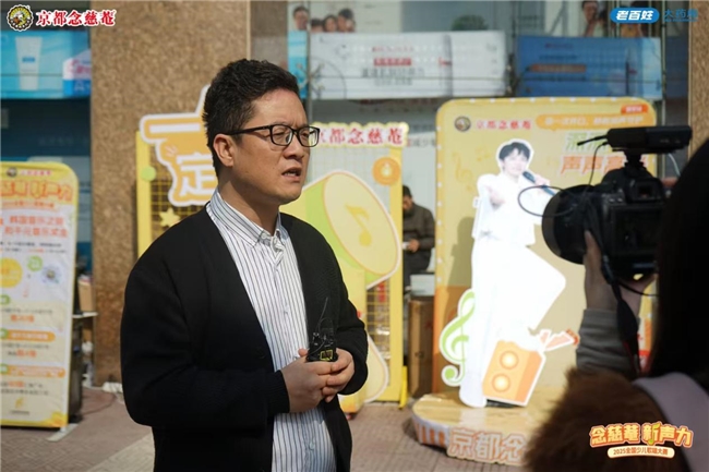 活动还吸引电视台前来报道,活动主办方代表和连锁代表接受记者采访。京都念慈菴 西安片区经理 赵建刚先生接受采访时说道:“今年赛事将走进全国25个城市,我们特别期待能有更多小朋友勇敢唱出自己的声音。无论是在现场报名,还是通过小程序上传作品,我们都希望孩子们能用歌声分享快乐与梦想。唱响属于自己的好歌声,也成为念慈菴守护的好声音。”